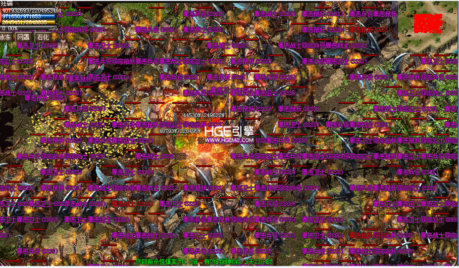 地图3的X330Y330十的范围内怪物多于100只
